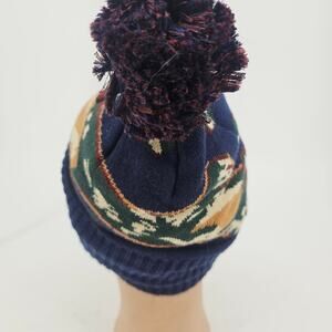 Keep warm, look cool. This thick knit beanie involves a fun, novelty print and a plush pom on top, all in a fully recycled construction.