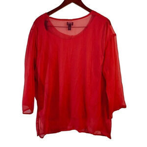 Uniti Casuals Vintage Peach Womens Blouse 1X Embroidered Flower Rhinestone Sheer