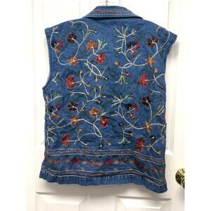 Units Embroidered Denim Vest Floral Button Front Boho Cottagecore Women’s S