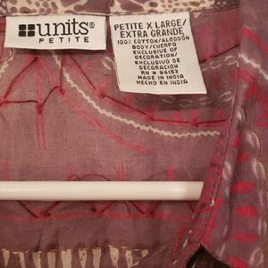 āUnitsāpetiteāRedāBeigeĀ PatternedāButtonādownāSizeāXLP