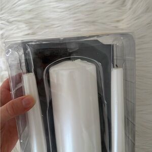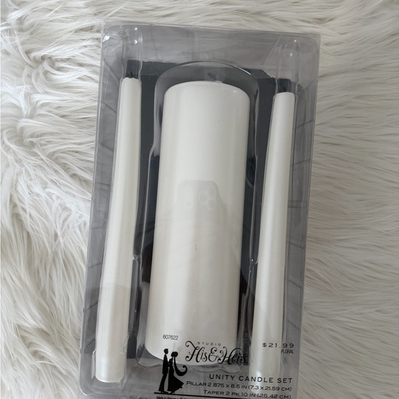 Elegant unity candle set with two taper candles and one pillar candle. Perfect for weddings or special occasions. Used 1x and still almost full size!