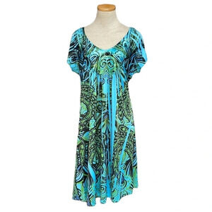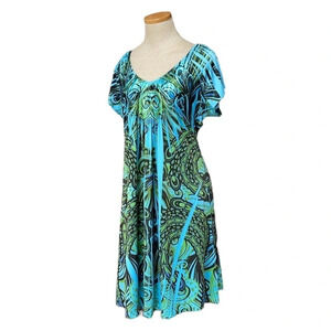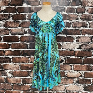 Unity Dress Womens Large Blue Green Short Sleeve A-Line Midi