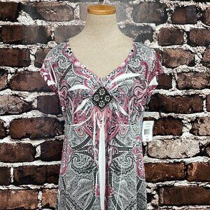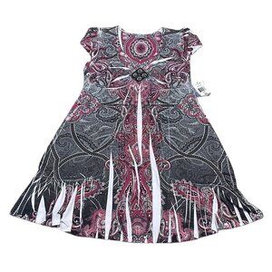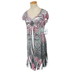 Unity Travel Para Dress NWT Paisley Beaded Short Sleeve Pink Black Size Large L