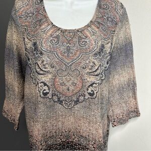 Unity World Tunic Top Women’s 2X Stretch 3/4 Sleeve Boho Artsy Gypsy Style