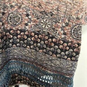 This is a bohemian/artsy tunic top with cut out accents at hem and back panel