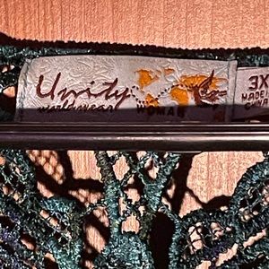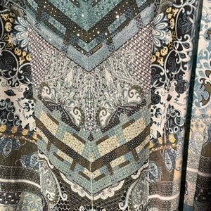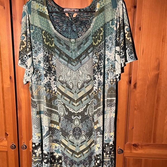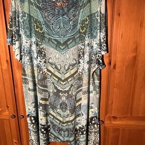 Multicolor greens very pretty, lace cut out butter sleeves, shark bite hem PTP 28, L 35