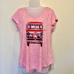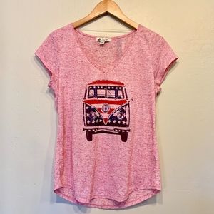 Unity World Wear | NWT Pink Marled Hue VW Bus V-Neck Shortsleeved Patriotic Tee