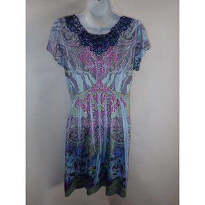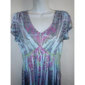 Unity World Wear PS Petite Blue Paisley Short Sleeve Dress Bohemian Tunic Hippie