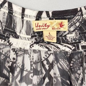 Unity World Wear Women’s Floral Sheer Blouse Swimwear Cover up Black White XL