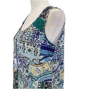 Unity World Women Dress Medium Blue Green Sleeveless Boho Print Crochet