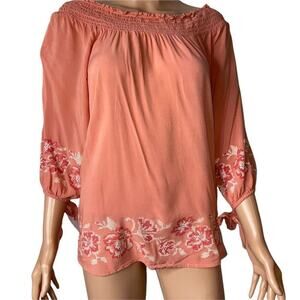 Unity World wear orange boho loose fitting 3/4 sleeve blouse tie cold shoulder M