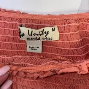Unity World wear orange boho loose fitting 3/4 sleeve blouse tie cold shoulder. Faux embroidery stitching. This can be worn off or on the shoulder. Boxy fit top, blouse, shirt. SZ M. Elastic collar/shoulder. Daily,Vacation, Beach, Casual, Fun outfit, Resort wear. Breathable, Summer, lightweight, spring, beachwear, swimsuit cover up, leisure wear, flirty, breezy, flowy, Pool side/beach attire. Relaxed, comfortable, stylish, decorative detail, cover-up dress, Ruffle Vintage Flowy Beach Boho.