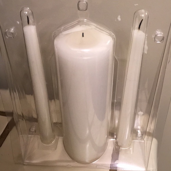 White unity candle set, was lit once at our wedding.