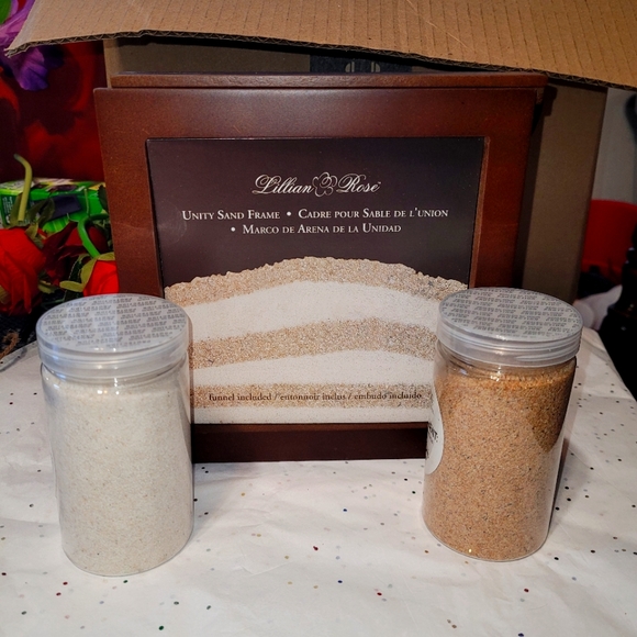 beautiful wooden unity sand frame, with 2 bottles of sand.