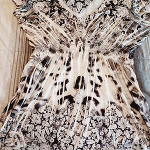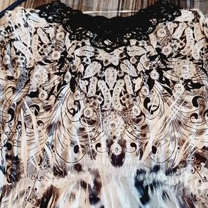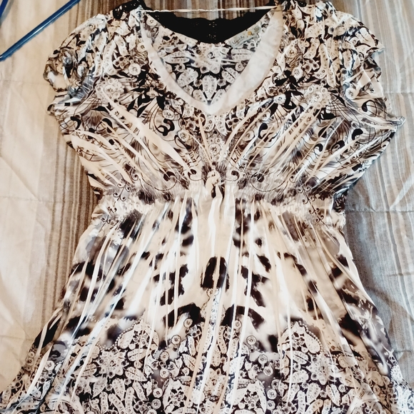 This shirt is a nice dress blouse it has elastic in the middle its v neck with lace collar