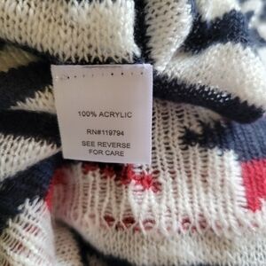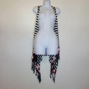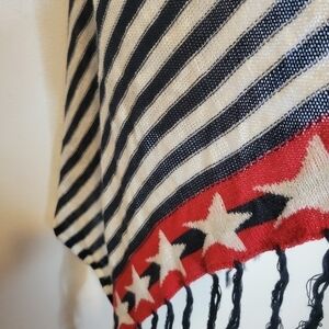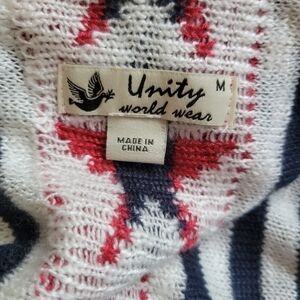 Unity world red/white/blue stars and stripes American flag knit open front vest with fringe. pre owned no rips or stains