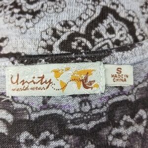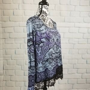 Unity world wear womens knit long sleeve geometric print top lace trim size small