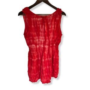 Unity red tie dye empire Waist ruffle neckline tank top women's medium rayon