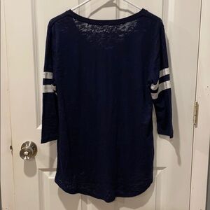 Excellent condition from smoke free owner size large and fits true to size tunic. Navy blue burnout material, 3/4 sleeve, back hem is longer than front, V neck. Casual and cool shirt.