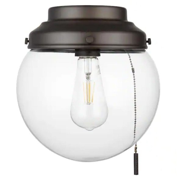 The Hampton Bay Universal Light Kit is designed to complement your ceiling fan and add functionality. The universal design translates to easy installation and is compatible with most ceiling fans. The bronze finish and clear glass globe creates an updated look for a traditional ceiling fan light kit. 1 vintage style clear 6.5-Watt LED bulb included.
