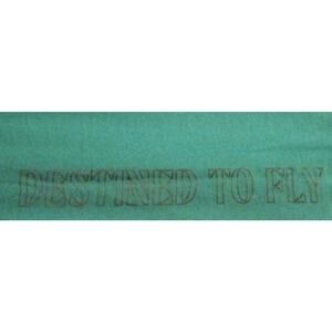 Down the right front side of the shirt are the appliqued words "Destined to Fly."