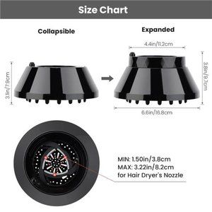 🧿【Universal Diffuser--Fits over 99% Dryer on the Market】It is suitable for blow dryers with 1.50-3.22inch/3.8-8.2cm nozzle. This diffuser has a rotary locking mechanism that enables you to adjust its opening to fit any dryers that you have. NOTE---Blow dryers over 2000W with AC fans motor, DC motor or on high settings are not recommended for use with the diffuser. Please using the diffuser on low heat/low speed setting at first.