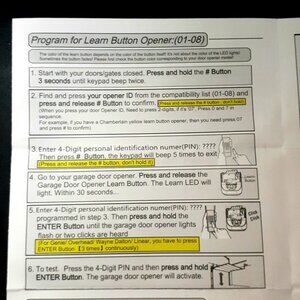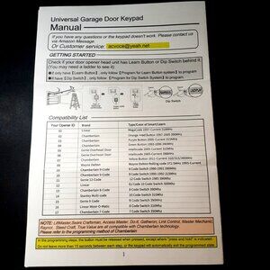 The Universal Garage Door Opener Keypad is a wireless keypad keyless entry system compatible with various brands including Wayne Dalton, Craftsman, LiftMaster, Genie, Chamberlain, Stanley, & Linear. The Compatible models are listed in Photos!!