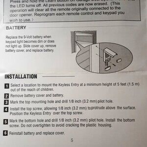 Easy Installation and Use: The keyless entry offers wireless installation and wireless programming. Includes a cover for weather protection. Large back-lit buttons on the keypad will provide quick and easy entry. You can program it with temporary access codes for visitors or delivery and service personnel.