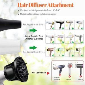 🧿【Universal Hair Diffuser】This hair dryer diffuser is a universal diffuser that fits most hair dryers from 1.4 inch to 2.6 inch. It is an adjustable hair diffuser attachment that matches over 99% of the different hair dryer designs on the market. It opens pretty wide so it can fit a variety of sizes. You no longer have to worry about what type of hair dryer to buy.
