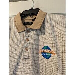 Universal Orlando Polo Shirt Men’s Medium Stylo Golf Beige Check Embroidered
