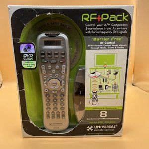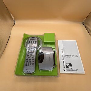 This Universal Remote Control by URC, called MasterControl, is a versatile device that can operate up to 8 different functions and is compatible with various brands and models such as TVs and audio systems. The sleek silver design complements any home entertainment setup and comes with a wireless range of up to 100 distance.