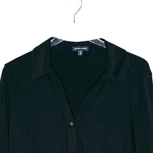 Universal Standard 16 Black Liquid Jersey Button Front Shirt V Neck Collar Plus