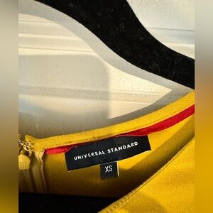 Lightly worn, crewneck and short sleeve iteration of the Universal Standard classic! Very lightly worn. Universal Standard size XS = womens 10/12. Midi, asymmetrical fit with ruched detail. Retail $280 - offers welcome!