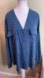 Stylish navy button-up blouse with front pockets. Perfect for casual or office wear.