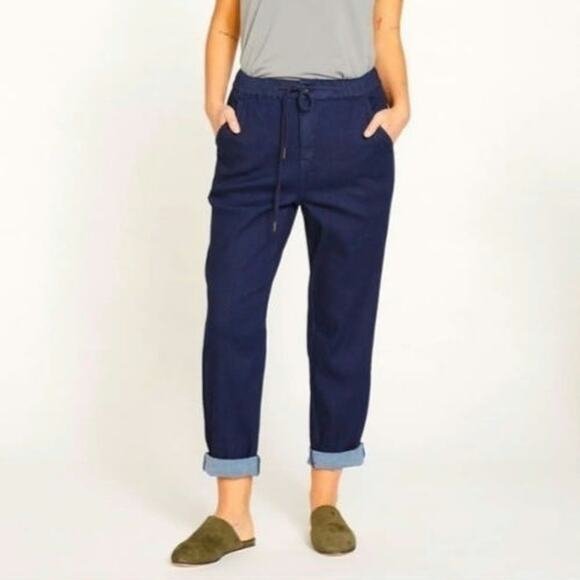 Universal Standard Dark Indigo Comfort Denim Drawstring High Rise Tapered Jean