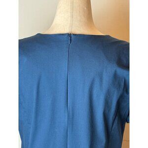 This dress from Universal Standard is in excellent condition. It is in solid blue color. A dropped ruffled waist adds to the everyday playfulness of this light and comfy stretch-poplin frock with notched sleeves and flattering darts. It features; hidden back-zipper closure, crew neckline, Short sleeves, drop waist, ruffled hem, mini length and is unlined. It is crafted from 65% cotton, 31% nylon and 4% spandex.