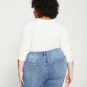 Universal Standard Foundation Long Sleeve V-Neck Tee Large 22/24 Vapor White NWT