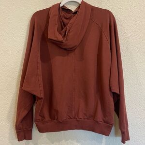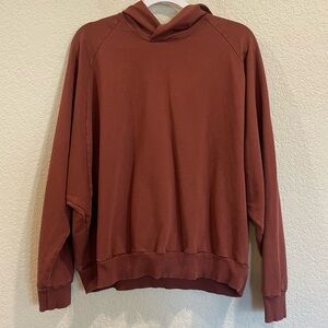 Universal Standard French Terry Pima Cotton Pullover in Rust in a size small which translates to a 14/16. Excellent used condition with no signs of wear. Soft, cozy and flatter with dolman sleeves and a hood.