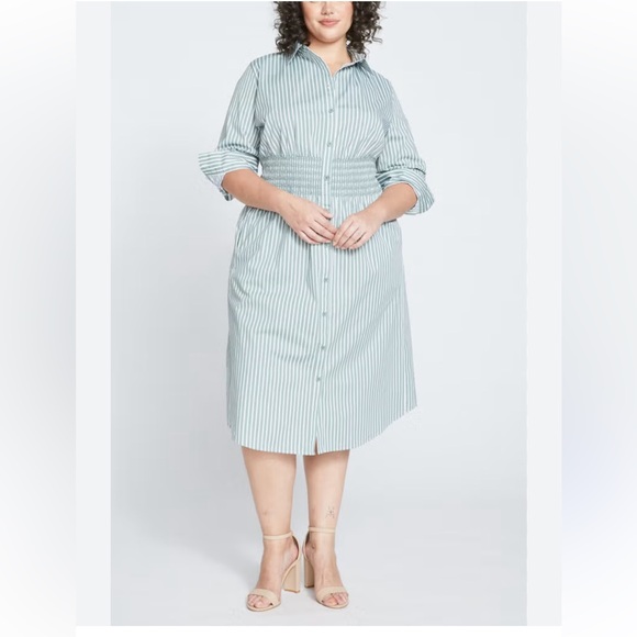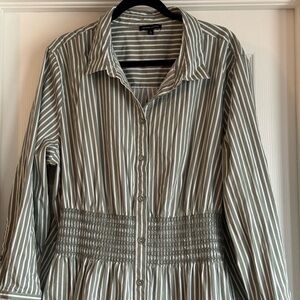 Universal Standard Hamptons Smocked Shirtdress size L 22/24 Green and white