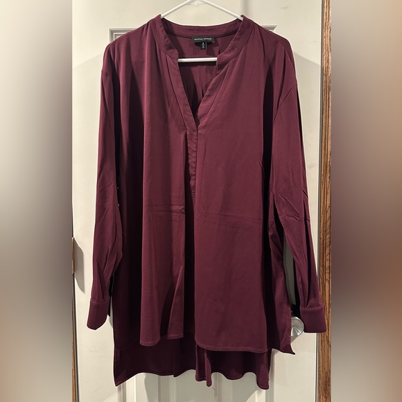 Universal Standard high-low tunic with open v-neck mandarin collar. Long, single button sleeves. Burgundy/maroon. In EUC, worn a couple times, never dried. No fading or pilling. US small is a 14/16.