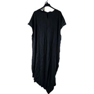 The Universal Standard Iconic Geneva Luxe Dress in 3XL size is a versatile and stylish option for women. Made from a blend of viscose and elastane, this black dress features a crew neck and short sleeves, with an asymmetrical hem for added flair. The pullover closure and pockets make it convenient for everyday wear, whether for a casual outing, party, or business event. Machine washable and suitable for various occasions, this midi-length dress with a solid pattern is a classic and elegant choice for any wardrobe.