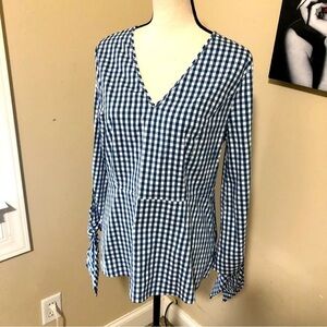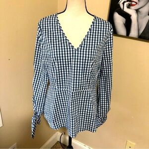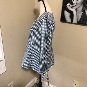 Universal Standard J. Crew Plaid Bow Tie Sleeves. Excellent preowned condition. Size small. Blue/white plaid. Cute top to pair with jeans or denim skirt!