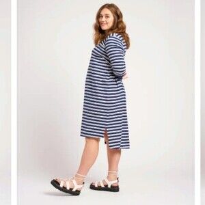 Universal Standard Rhine V Neck Color Block Cuff Dress Blue White Stripe 4 NWT