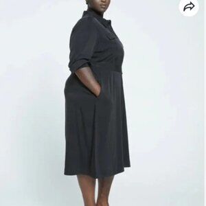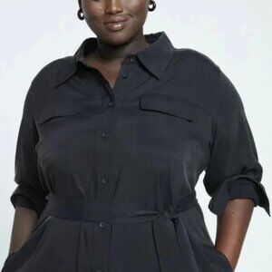 Universal Standard Savannah Cupro Button-Down Shirt Dress Black - US 18 - 20