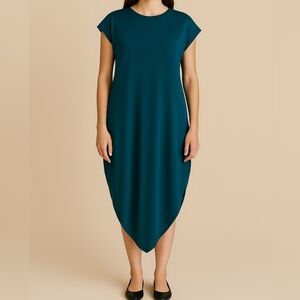 Designed with an asymmetrical hem that creates a lovely drape and ruching effect.