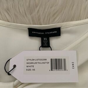 Universal Standard White Front Twist Detail Top Blouse Size XS. New with tags. Short sleeve, Mackaya Luxe Twill Knot Top. Size 10-12