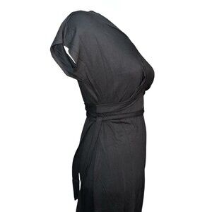 Universal Standard V Neck Tie Waist Soft Casual Dress Sz 4XS (XS 00-0) Black Sho