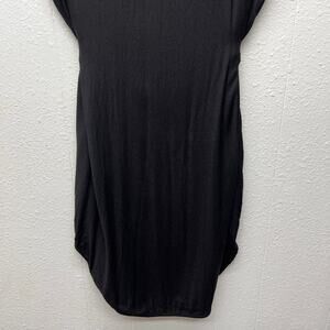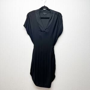 Universal Standard women's pullover black dress. V-neck. Short wide sleeves. Round hem. Back or front tie. Unlined. Midi length. Oversized fit. Great used condition. No stains, tears or holes.