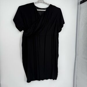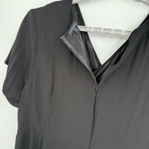 Universal Standard Womens Mary Black Faux Wrap Surplice Sheath Dress Size 2X (30-32). V neck. Short sleeves. Back zip. Viscose elastane. Stretch. Back slit. Bust 60. Waist 56. Length 47. Measurements are approximate. Very good preowned condition.