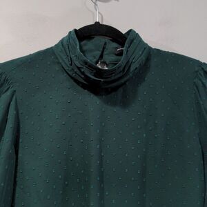 Universal Standard Womens Swiss Dot Blouse Size 6/8 Green Balloon Sleeve Chiffon